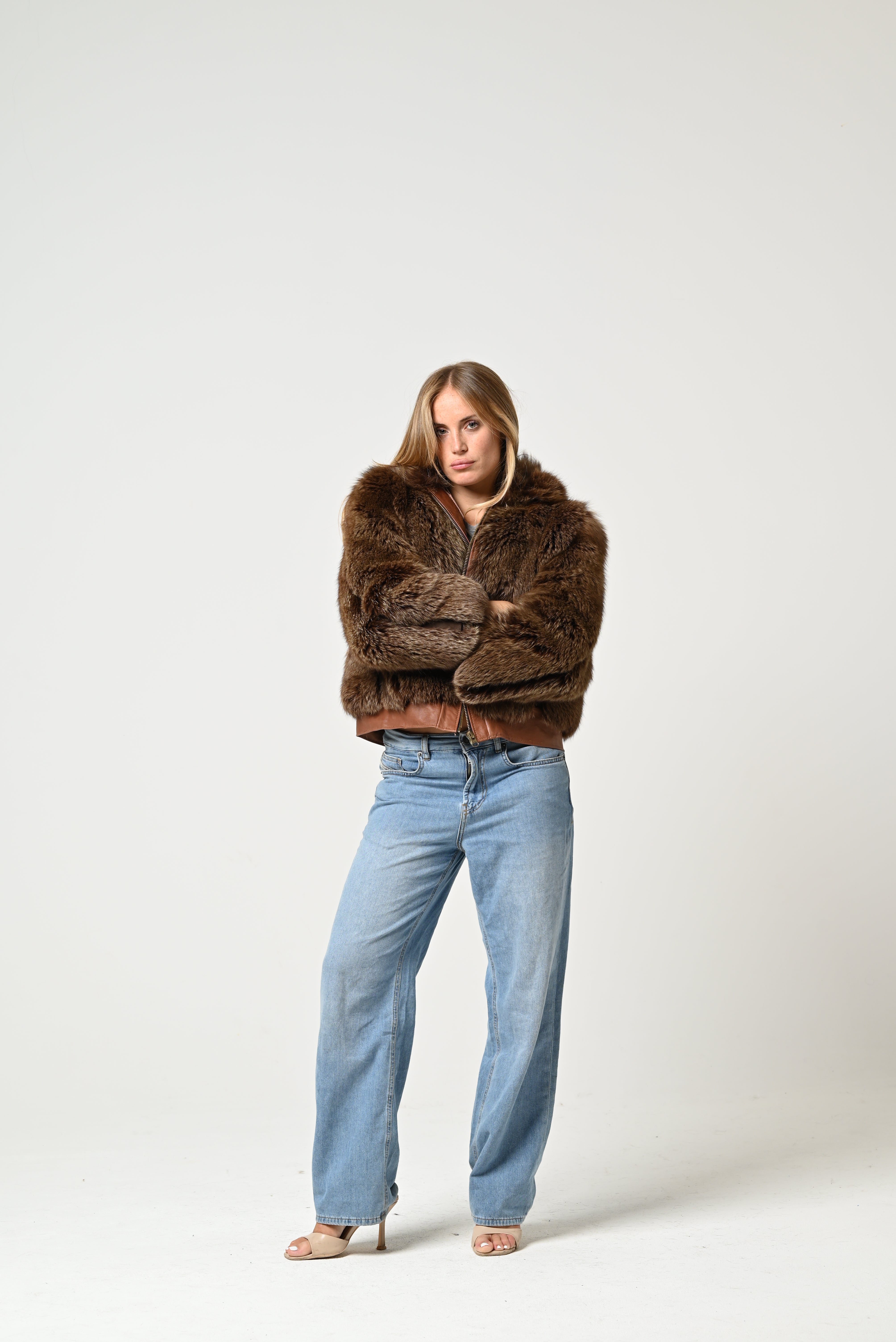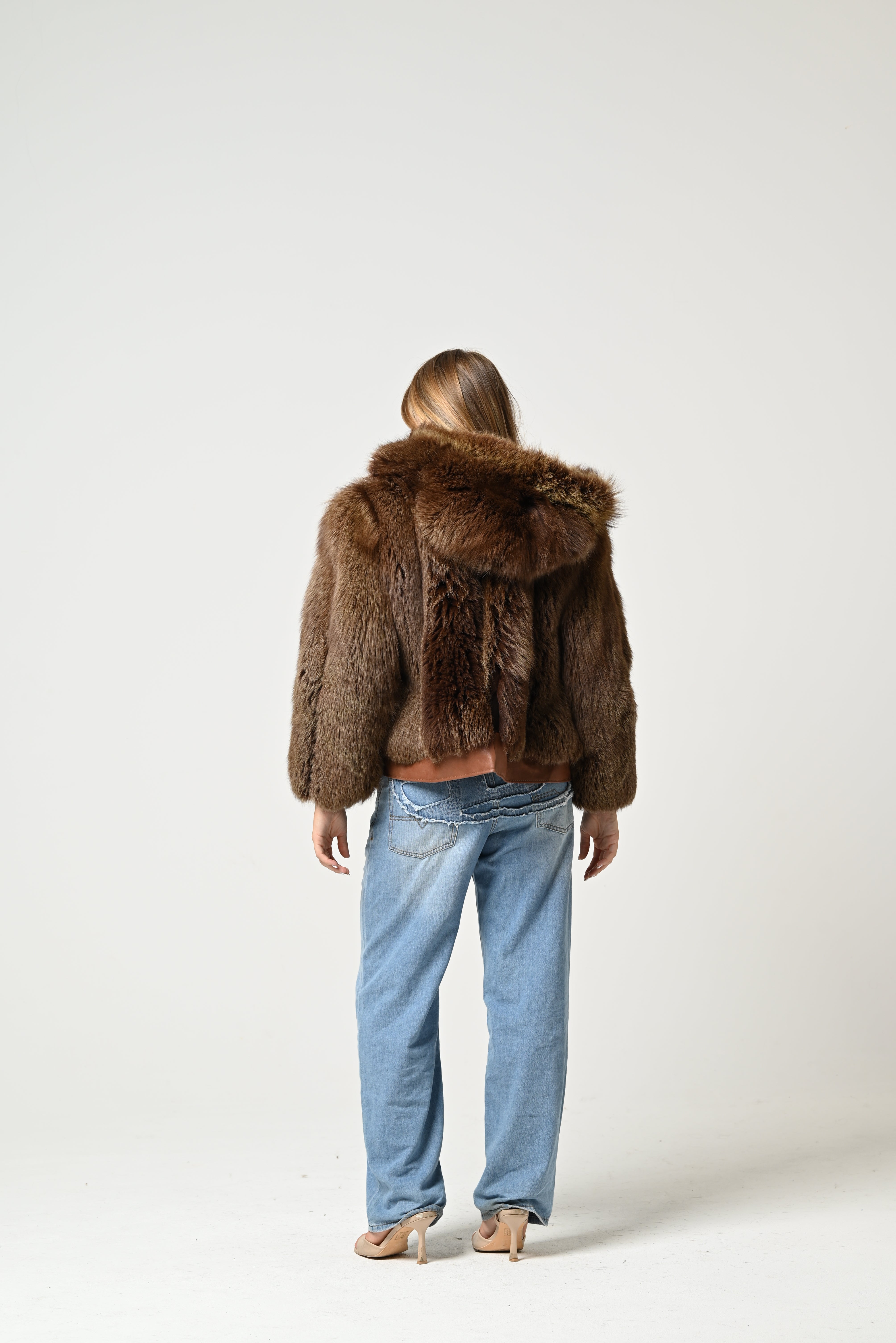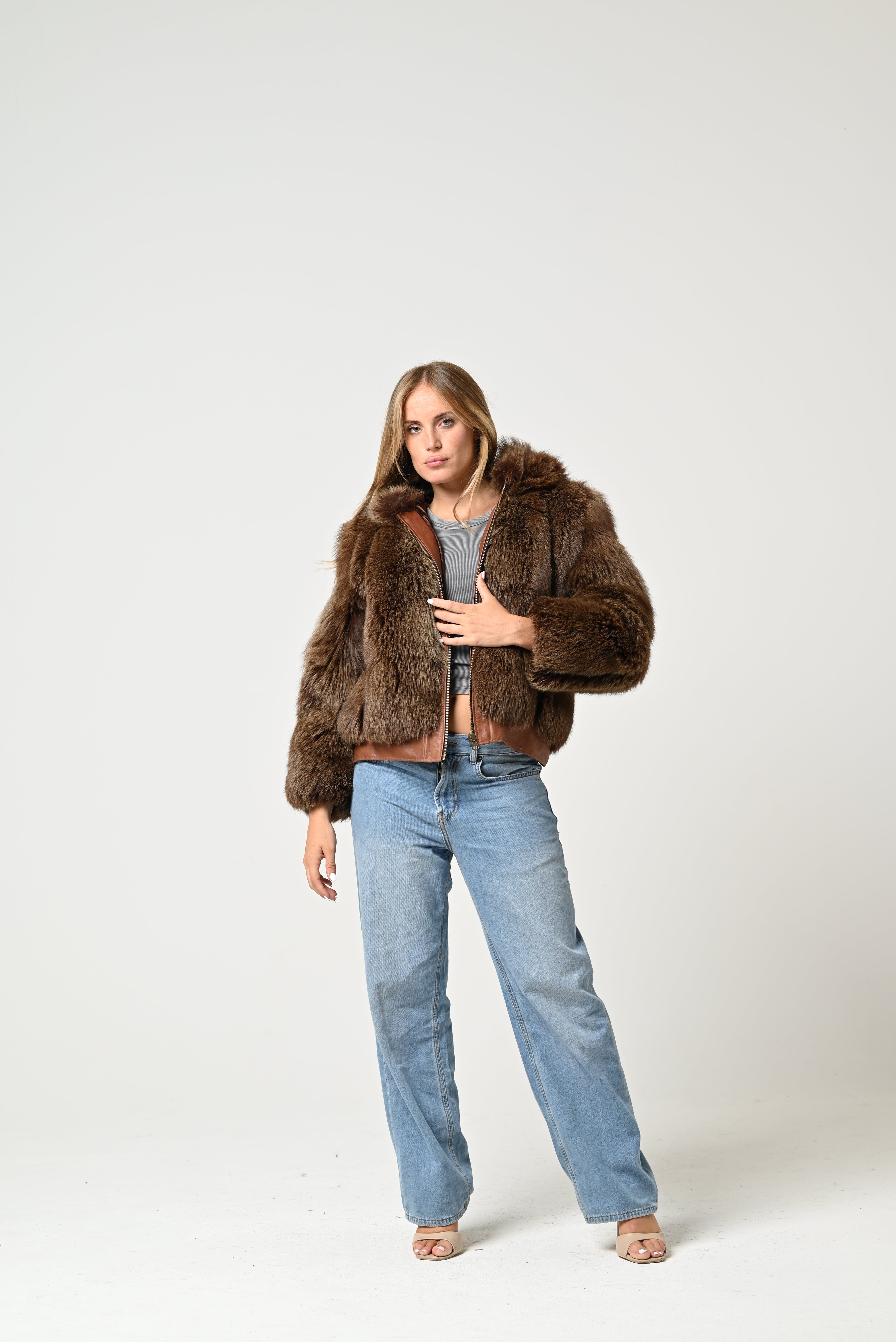 Giaccone corto in volpe con cappuccio, dal taglio moderno e voluminoso. Un capo caldo e prezioso, perfetto per un look esclusivo e di carattere.