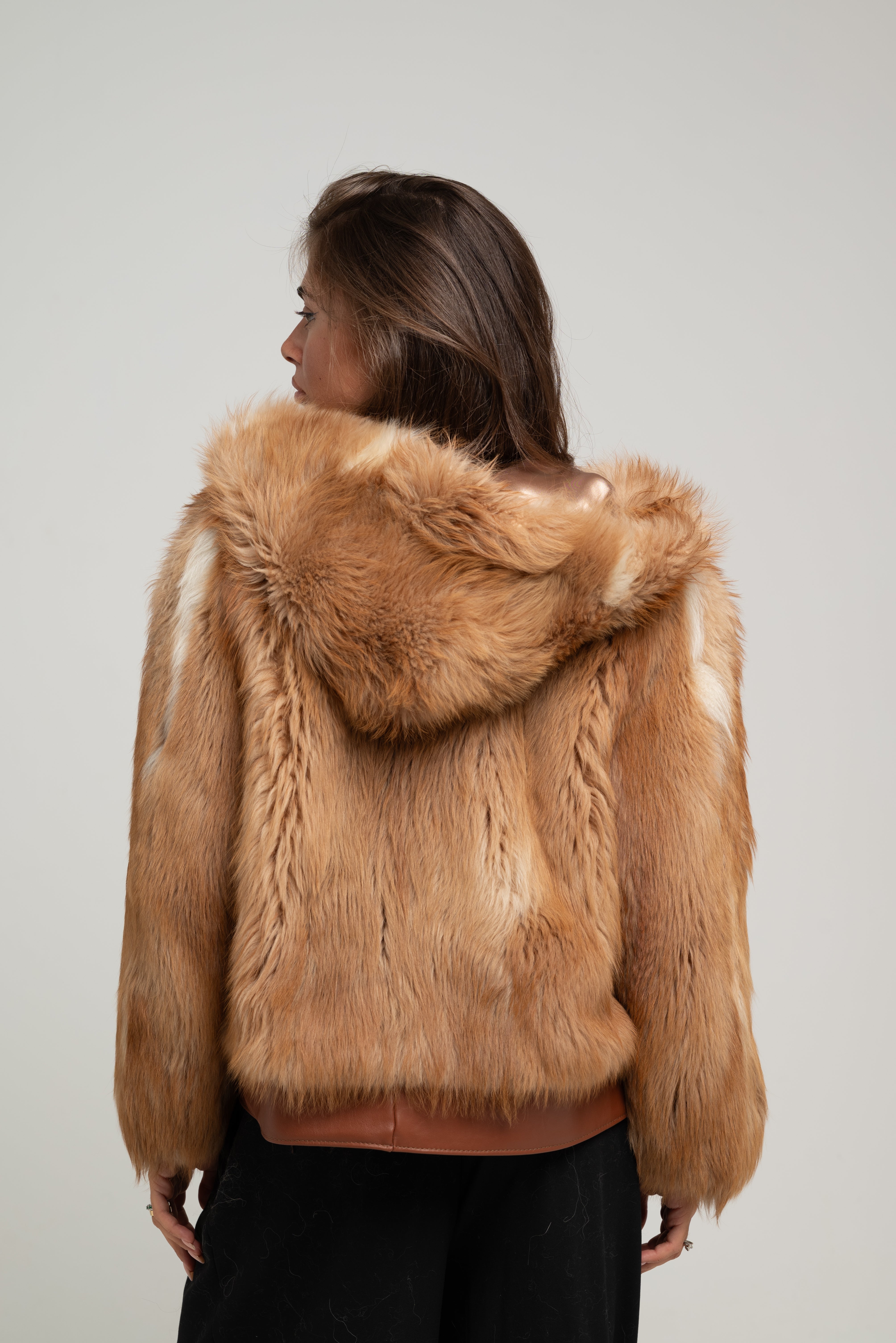 Questa giacca in pelliccia  presenta un design moderno con cappuccio e chiusura a zip. Il taglio corto e il volume morbido la rendono un capo versatile, capace di unire eleganza e praticità. L’interno in raso dona un tocco raffinato, mentre la texture soffice della pelliccia crea un look avvolgente e di carattere.