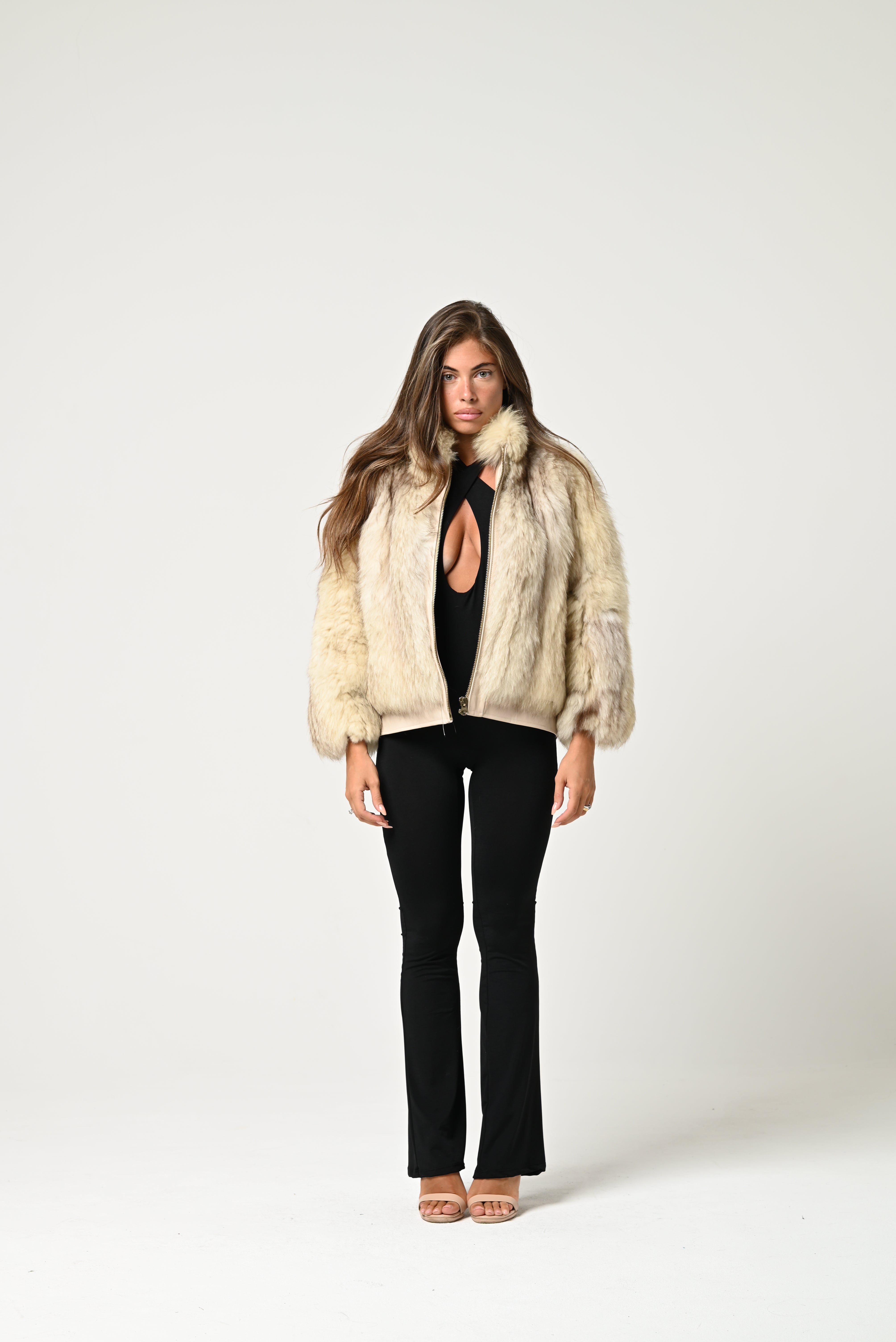 Questo capo è un bomber in pelliccia chiara che unisce il lusso della pelliccia con lo stile casual e contemporaneo del taglio bomber. La zip centrale lo rende pratico e versatile, mentre la linea leggermente corta rispetto ai cappotti classici valorizza la silhouette, donando un look giovane e sofisticato.