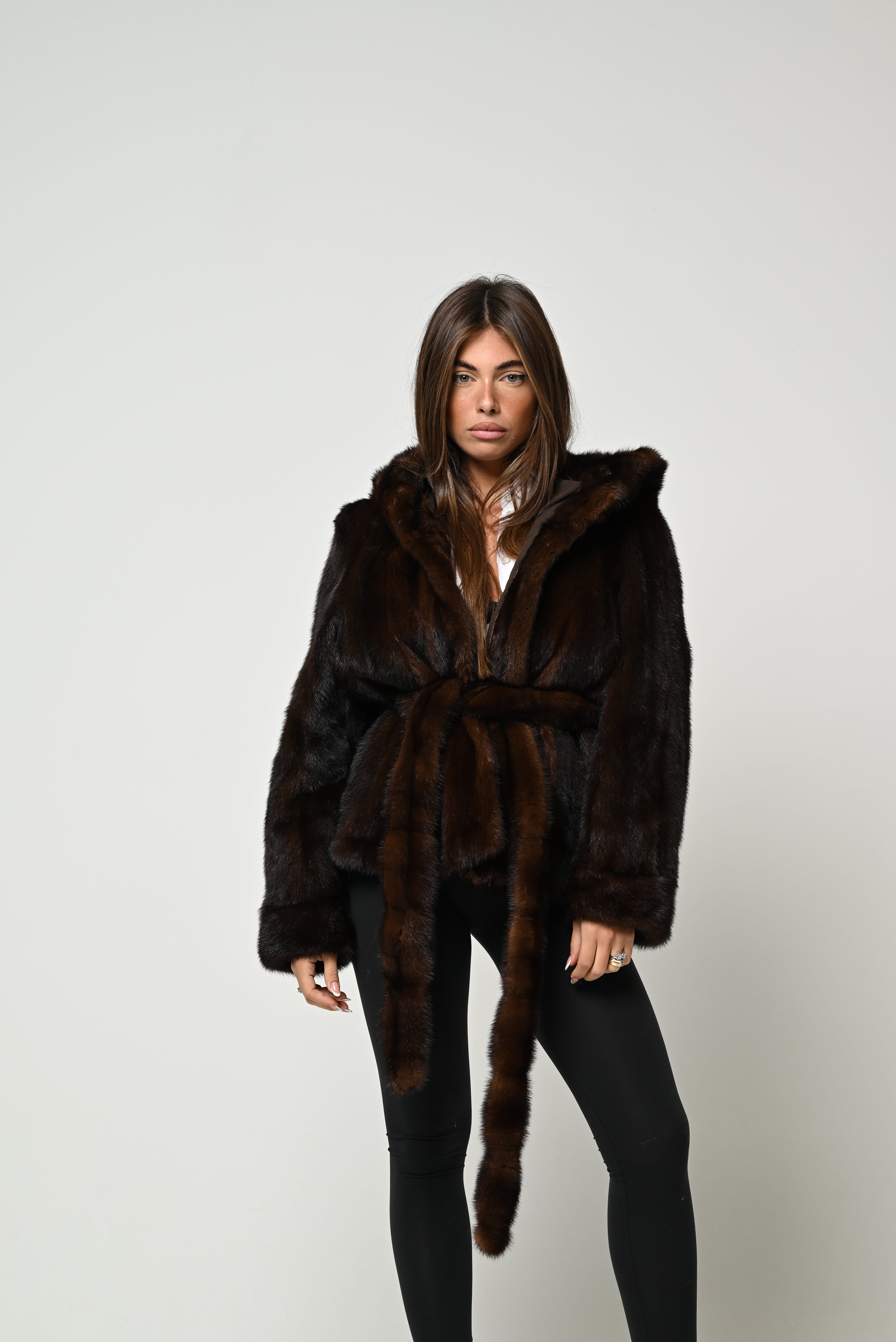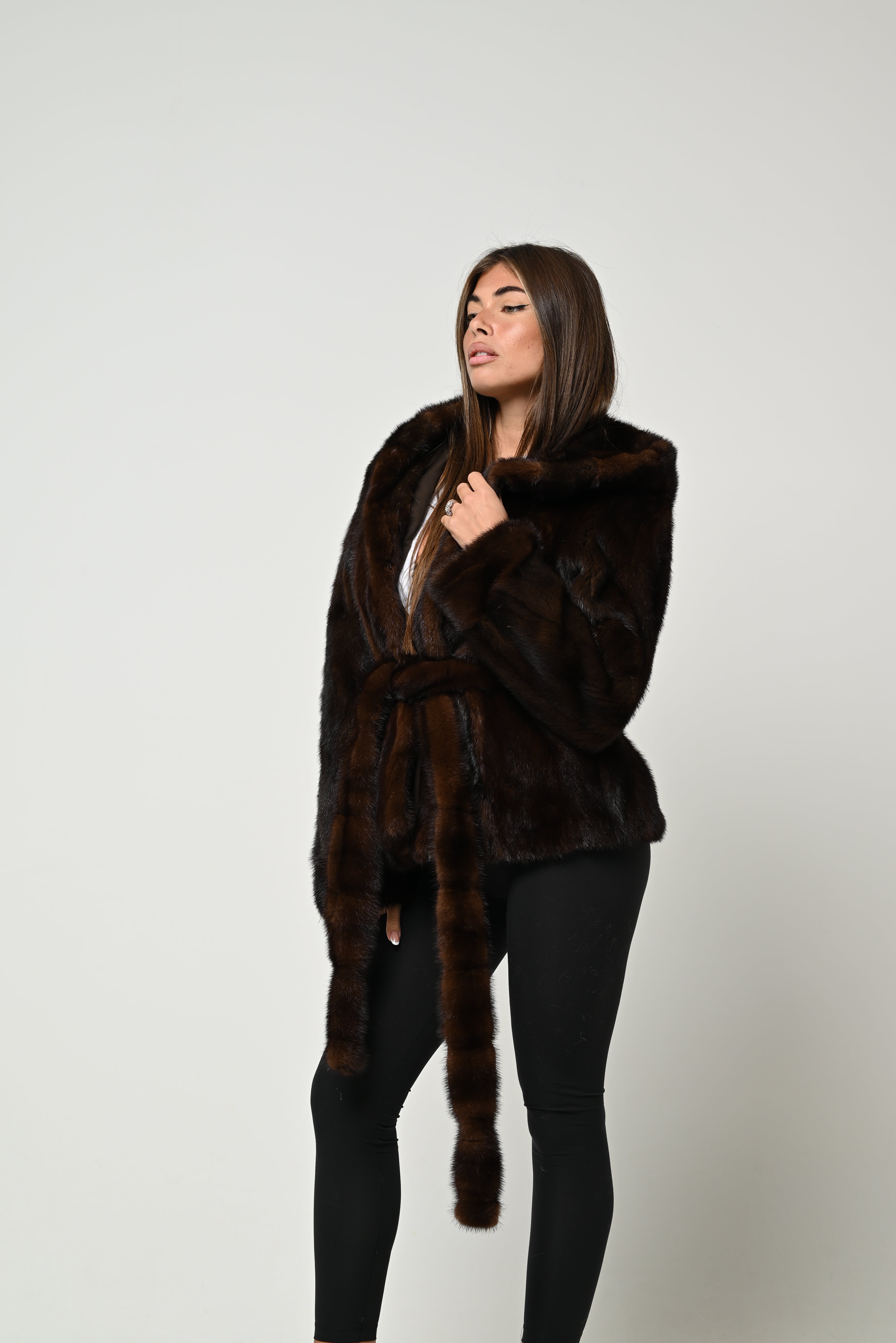 Visone cappuccio e cintura 782