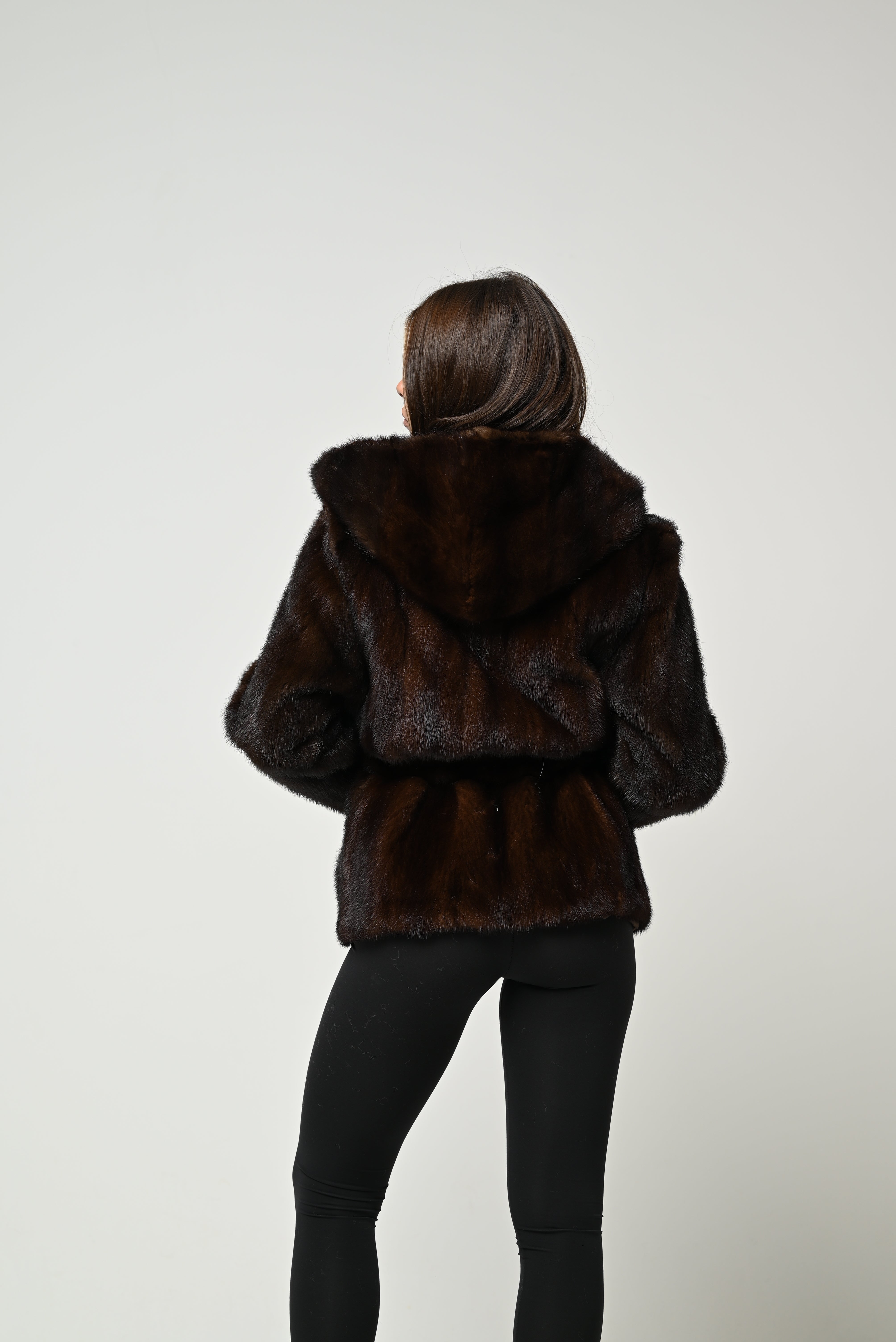 Giacca in pelliccia dalle tonalità scure e luminose, caratterizzata da un taglio corto e da una cintura in pelliccia coordinata che valorizza la vita. Elegante, moderna e facilmente abbinabile, è il capo ideale per chi cerca raffinatezza senza rinunciare al comfort.